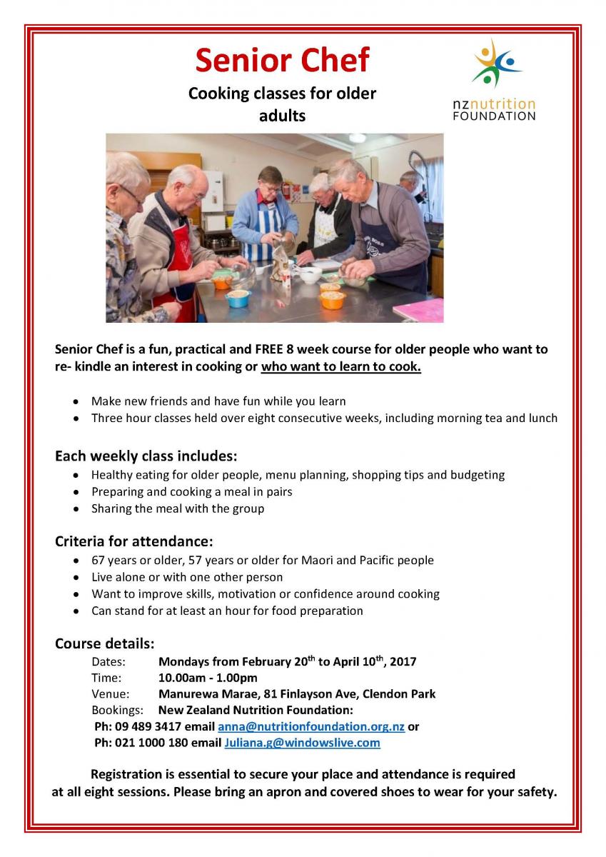 Senior Chef is a fun, practical and FREE 8 week course for older people who want to re- kindle an interest in cooking or who want to learn to cook.