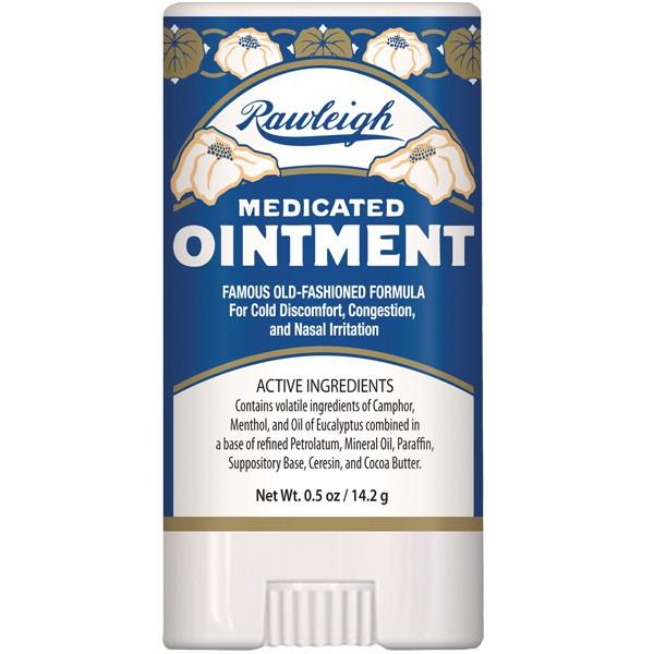 Apply Rawleigh Medicated Ointment stick to chest and nasal areas for quick and lasting relief of minor congestion and nasal irritation. Rawleigh Medicated Ointment can also be used to treat cracked and chapped skin as well as superficial cuts, scratches, and burns.