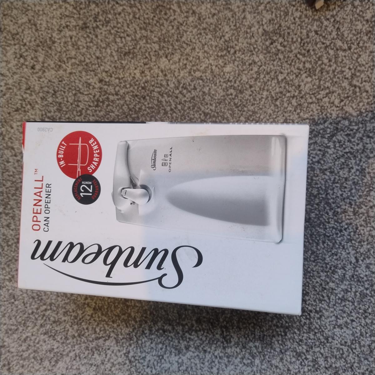 Set of stake knife and fork ( 4 each) A set of carving knife and fork. Sunbeam electric can opener.