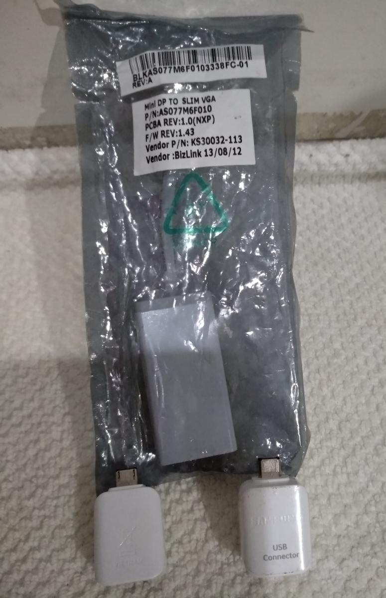 Mini DP to slim VGA and two Samsung USB connectors which can be shipped for a little extra.