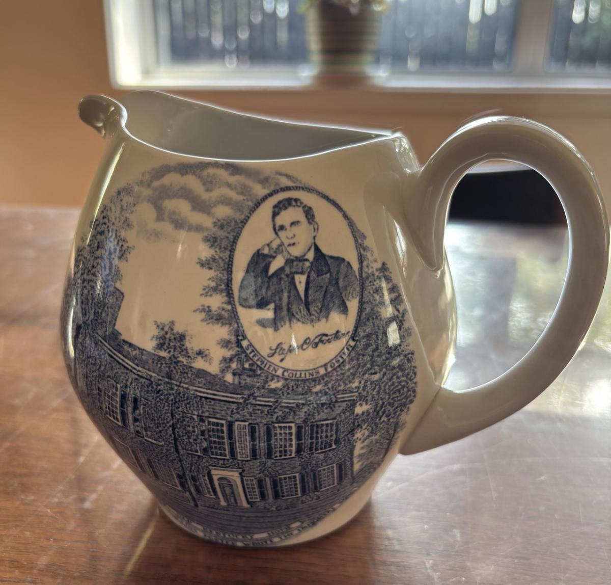Has a picture of Stephen Foster Collins with a line of lyrics on the back