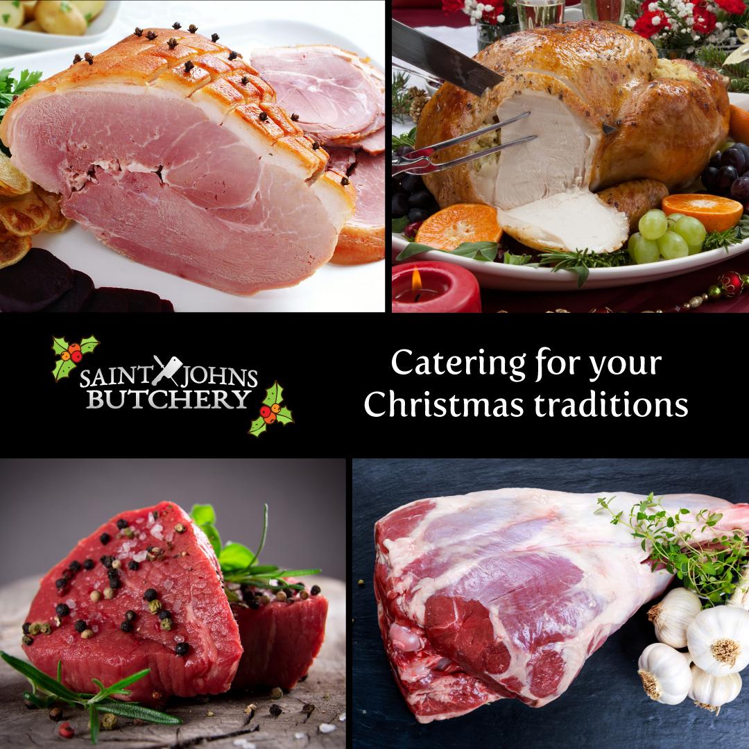 Saint Johns Butchery is your number one stop for your traditional Christmas dinner supplies, including free-range turkeys (all sizes), succulent hams made the old-fashioned way, export-quality legs of New Zealand lamb, and whole beef eye fillets (for only $54.99/kg).