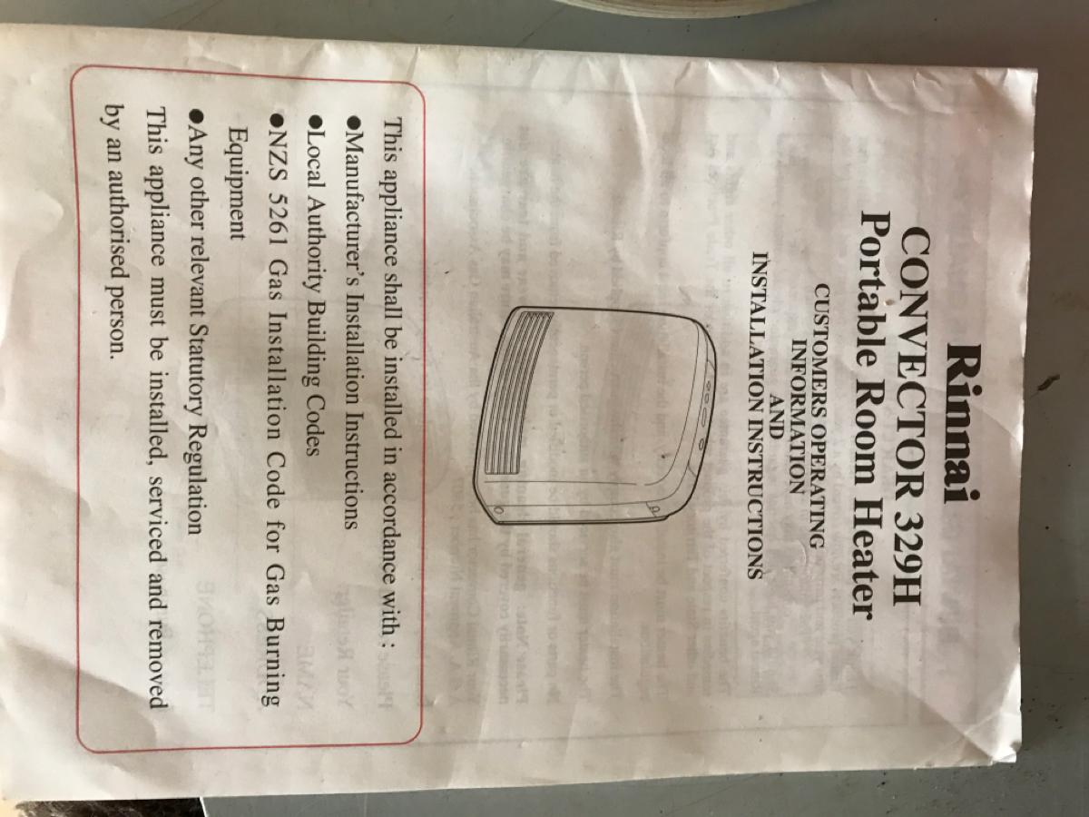This heater is nearly 20 years old but hardly used because we had heat pumps etc. Great for heating a room quickly but not vented so room needs to be well ventilated. Connects to gas tap and is then assisted by electric fan. $50 negotiable