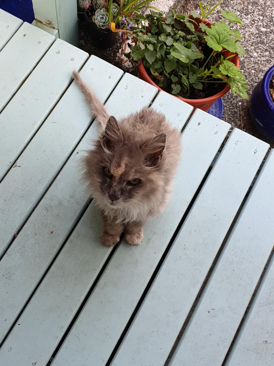 This is a long shot. Does anyone recognize this cat. Very skinny and probably deaf. It is wanting to move in with me. Found it in my kitchen eating my cat's food. Didn't hear me call out. Has tried to go upstairs. I'm concerned that it's someone's treasured senior citizen … View moreThis is a long shot. Does anyone recognize this cat. Very skinny and probably deaf. It is wanting to move in with me. Found it in my kitchen eating my cat's food. Didn't hear me call out. Has tried to go upstairs. I'm concerned that it's someone's treasured senior citizen that has escaped it's home.