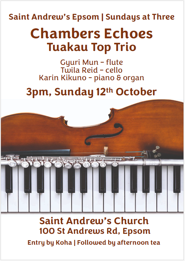 Sunday 12th October at 3pm - All are welcome to join us for an enjoyable afternoon with Tuakau Top Trio at Saint Andrew's Epsom.