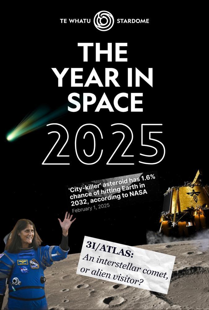 Catch up on the biggest stories from across the cosmos: the latest updates on … View moreAs the year comes to a close, Te Whatu Stardome invites you to The Year in Space 2025 — our annual full-dome journey through the most exciting astronomical and space-exploration moments of the past twelve months.
