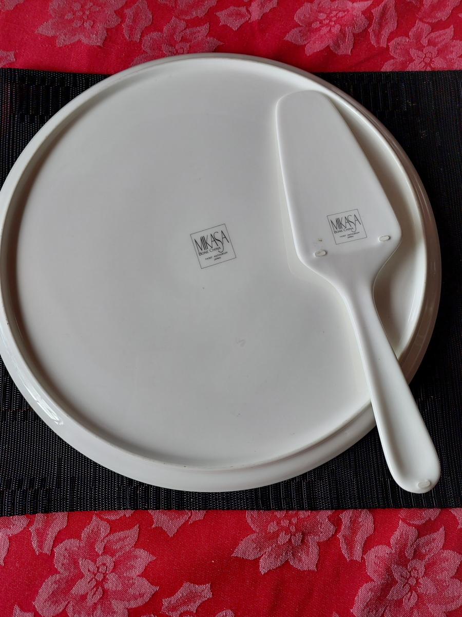 Fine-bone china by Mikasa Japan.Cake platter n spatula.