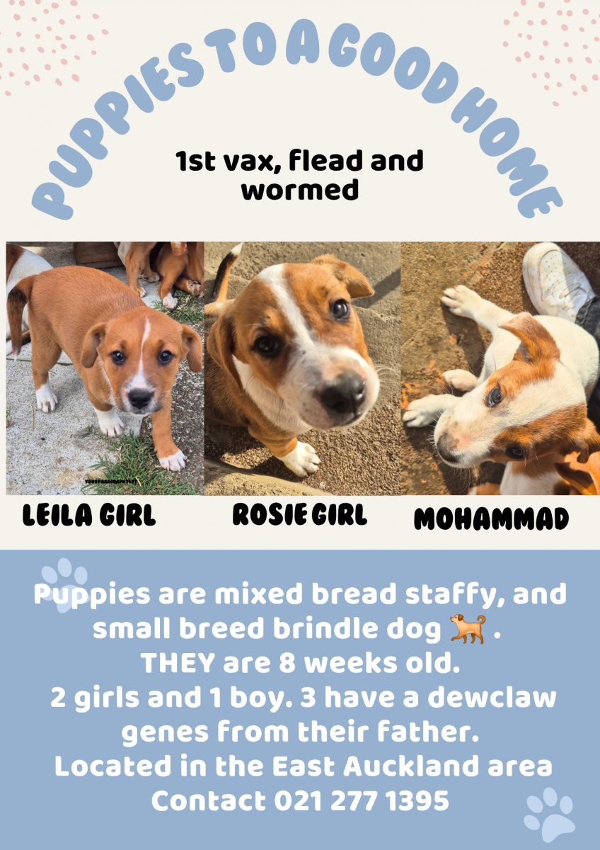 3 puppies have been rehomed already. I have 3 pups left to rehome.