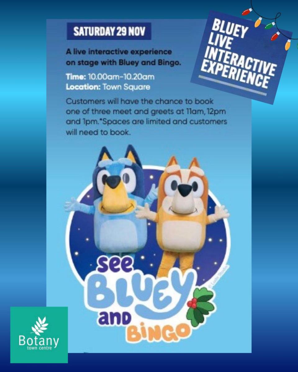 💙 Bluey and Bingo are coming to Botany Town Centre on 29 November from 10am - 10. 20am. 🩵