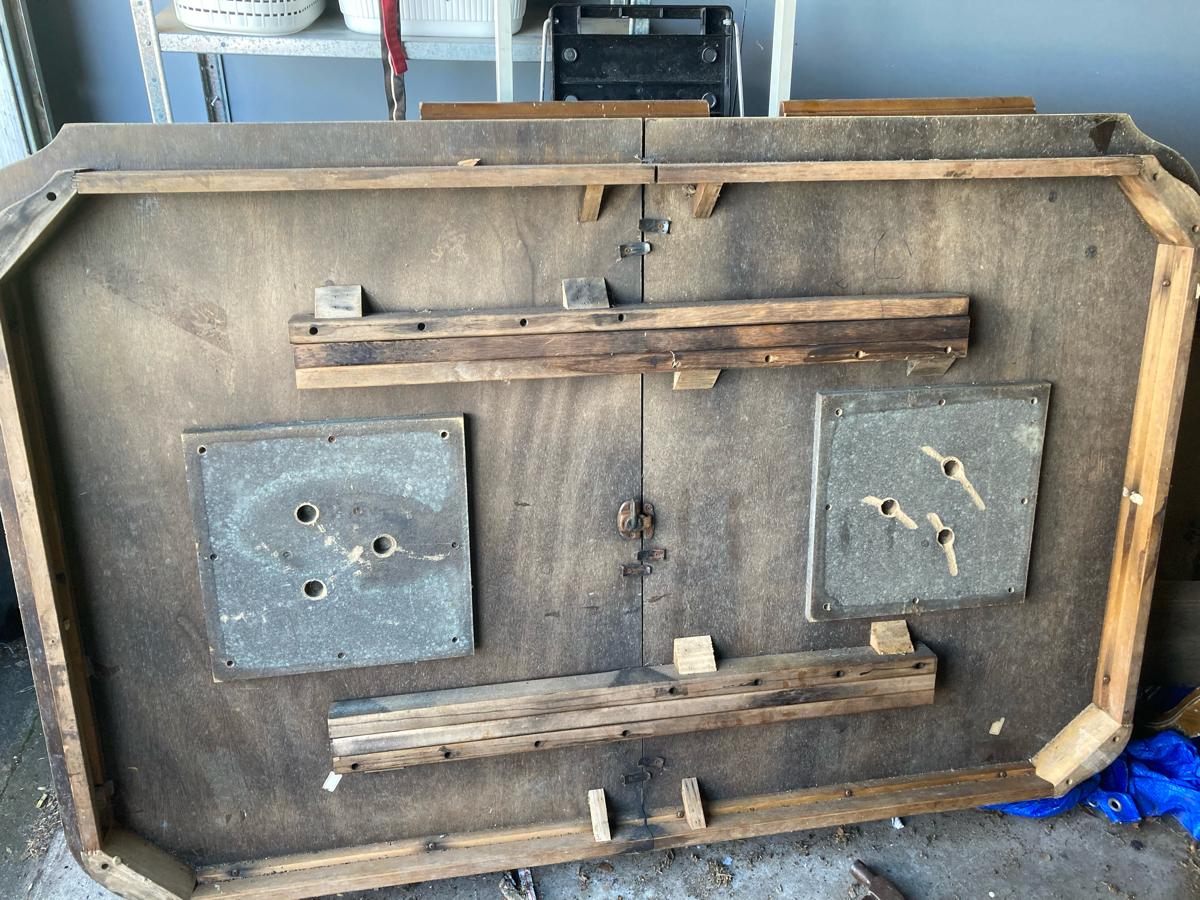 Heavy and solid two legs dinner table , well loved and well used with scratches marks etc,extendable with