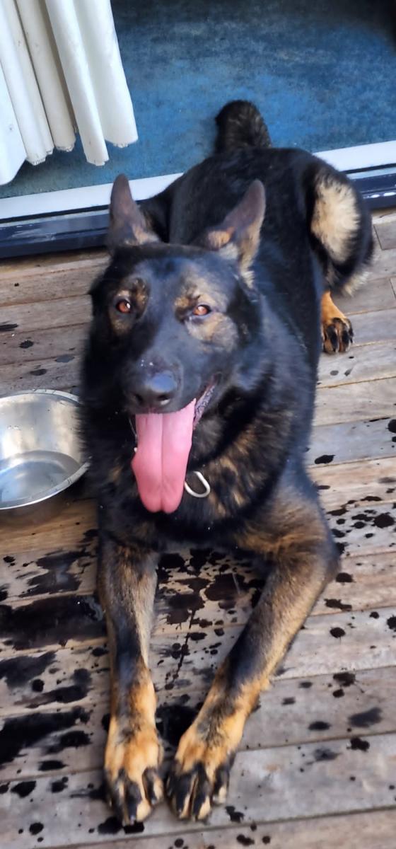 Our loving dog Apollo has got out this morning. This is out of character for him, as he never leaves our property. He is mostly black with some tan.