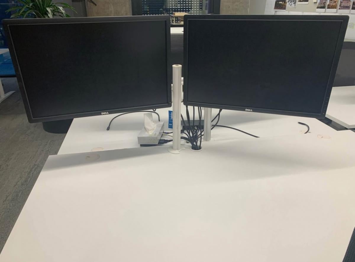 Used but good conditioned Monitors and a Dual Arm Monitor stand. Power cord for monitors also included.