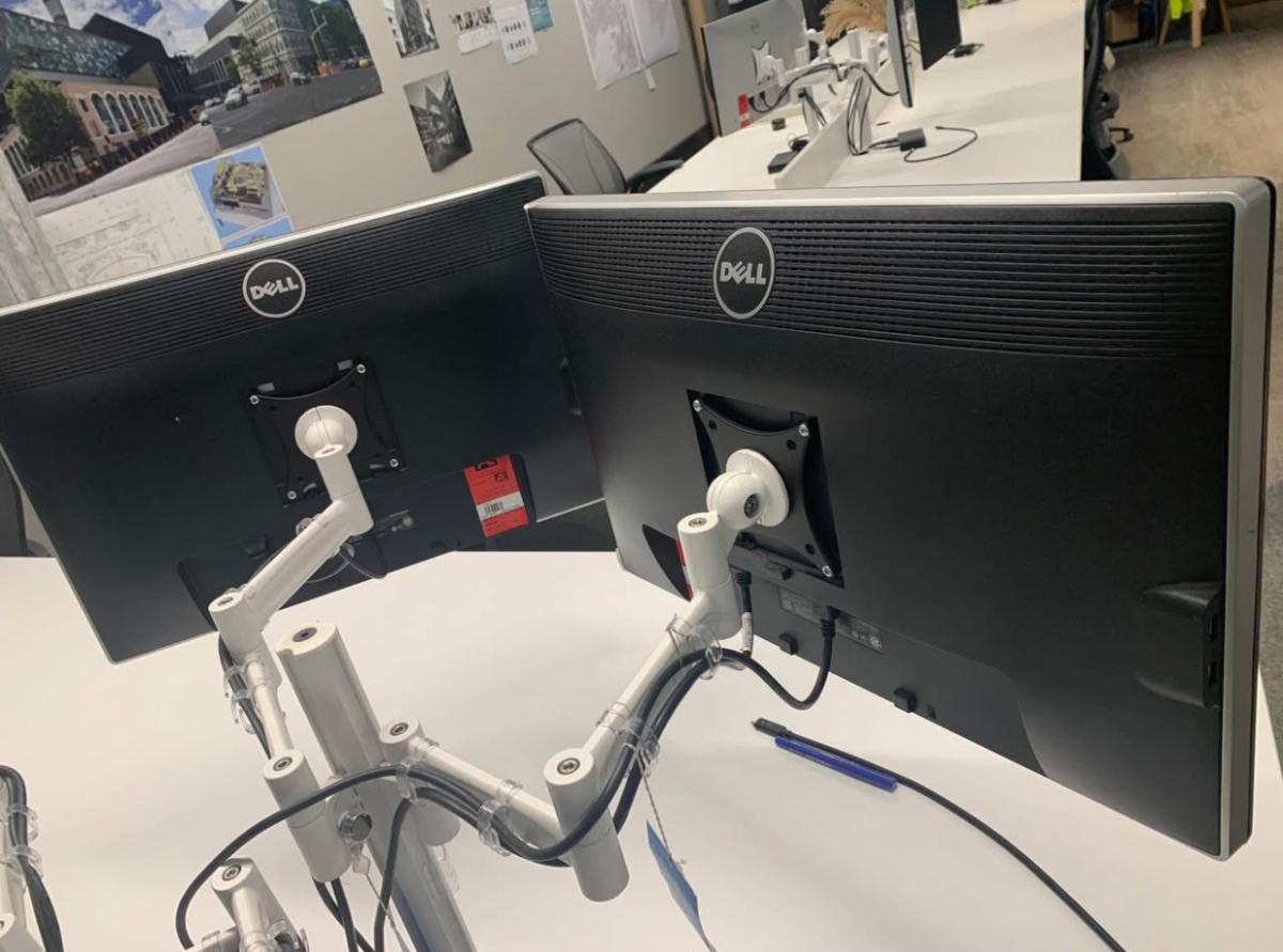 Below is a picture of the ports on the monitor (Dell U2412M). These monitors do not come with their standard monitor stands or a soundbar.