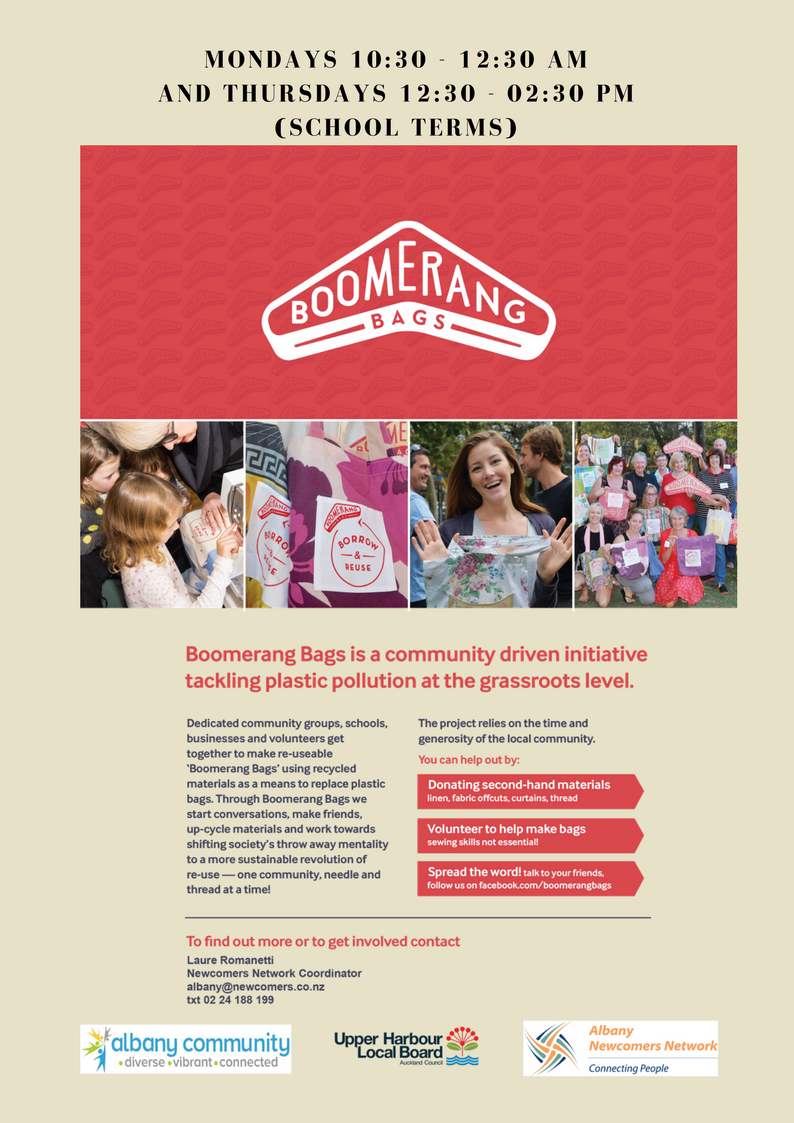 Come and join us on Monday, 9th April at the Albany House to help us cut and sew boomerang bags.