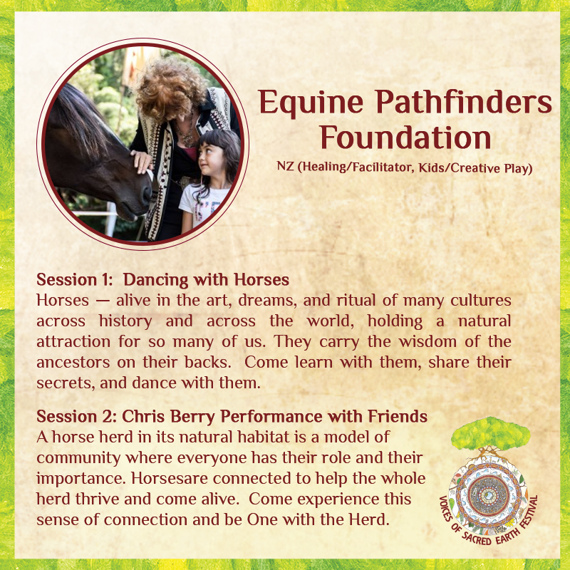 We're blessed to have so many incredible presenters joining us this year at Voices of Sacred Earth Festival 2018 including; Equine Pathfinders Foundation, Giselle Demelchiore and Gary Cook.
