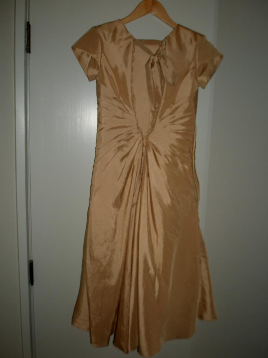 This dress was an order made fit for size 8 or 10, built in bra for my mother of the bride dress as I normally ware size 8 or 10 from Glason, Temt and cotton on. I'm 5f7 tall. This style can be fitted a little bigger or smaller because the design at the back of the dress. It is very good … View moreThis dress was an order made fit for size 8 or 10, built in bra for my mother of the bride dress as I normally ware size 8 or 10 from Glason, Temt and cotton on. I'm 5f7 tall. This style can be fitted a little bigger or smaller because the design at the back of the dress. It is very good made. I was very impressed. This style could hide a fat tommy very well.