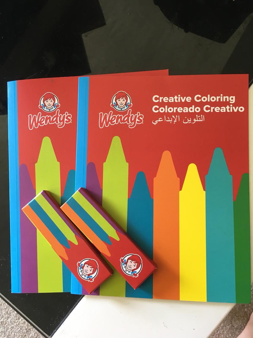 2 books and 2 sets of crayons. One of them has a couple of pages used.