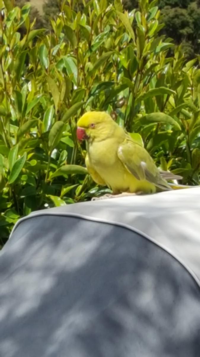 There is an Indian Ringneck on our porch since this morning which seems quite tame.