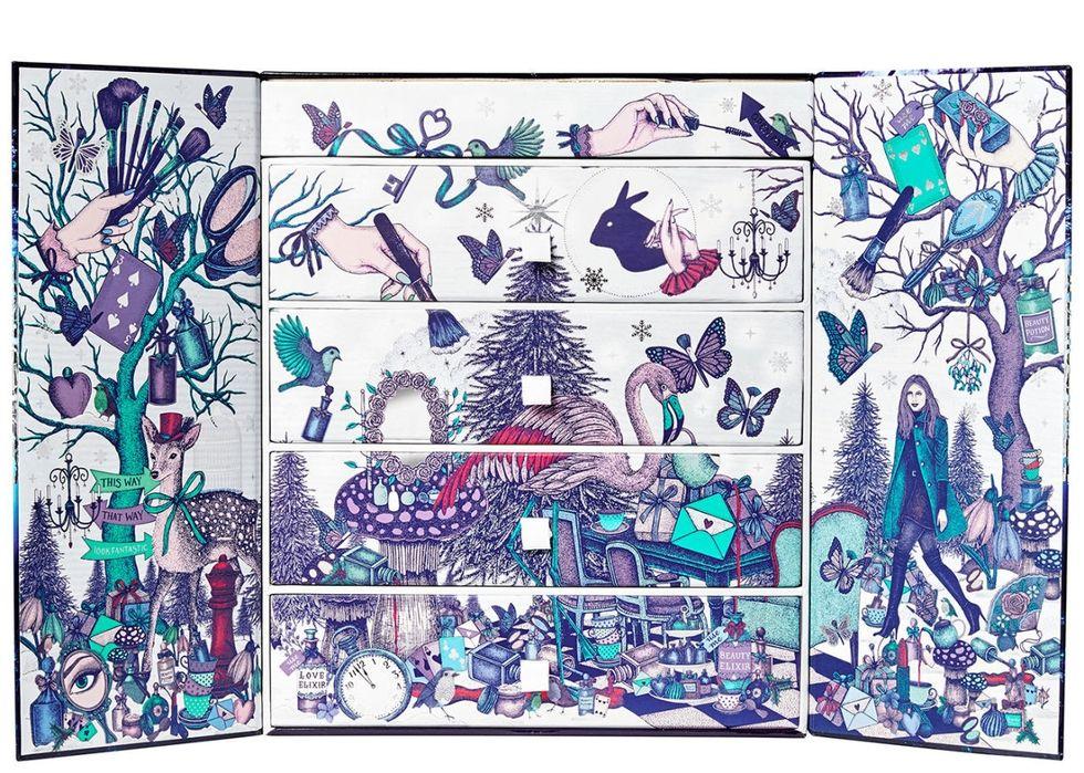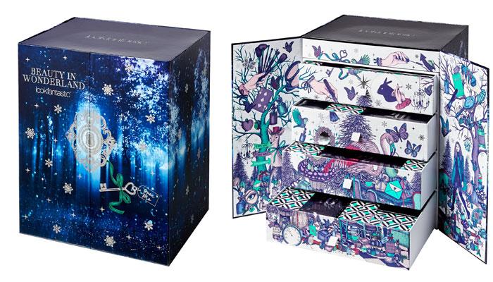 The Beauty in Wonderland themed advent calendar from Lookfantastic is packed with 9 full-sized products, 16 deluxe samples, 19 exclusive products, 13 skincare treats, three beauty tools and seven colour cosmetics.