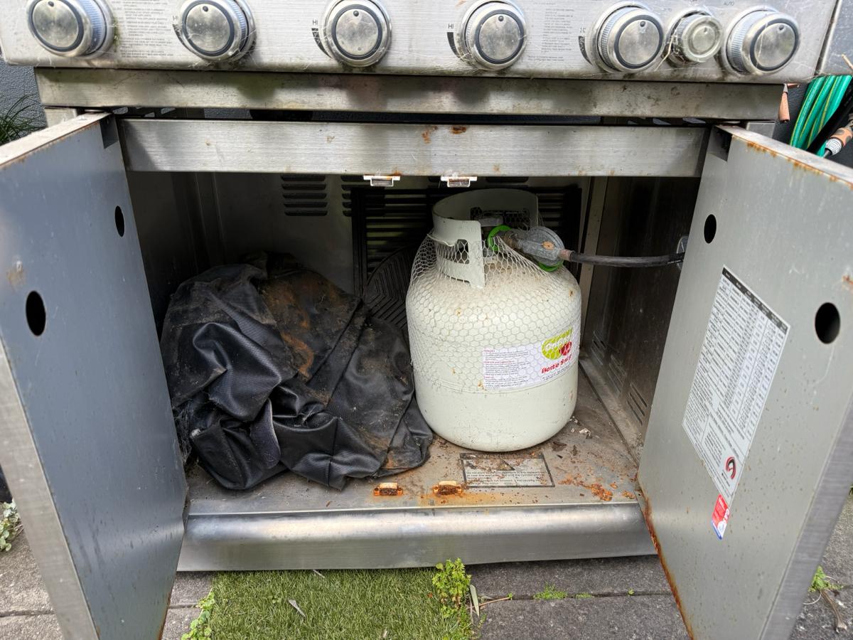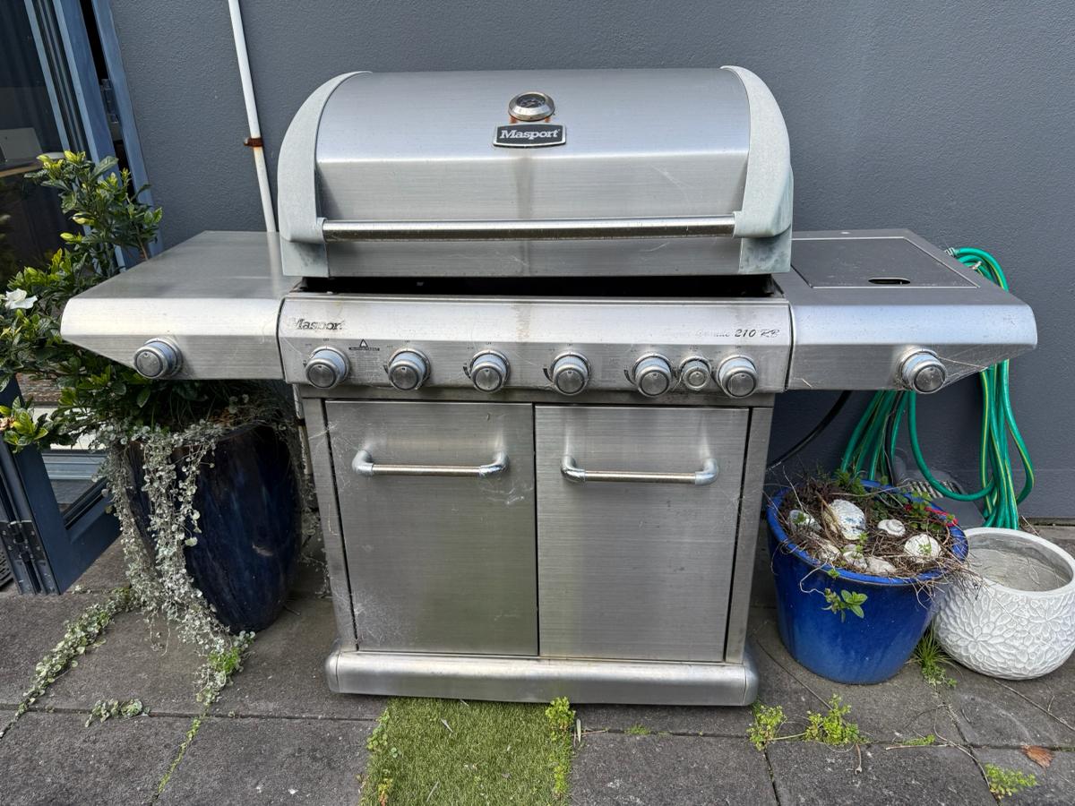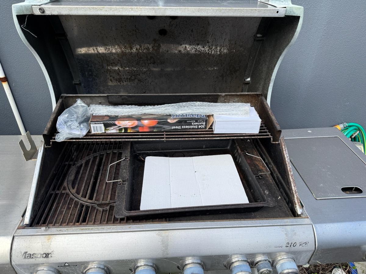 Good BBQ but we don’t use it. Needs a really good clean. Includes roasting pan and spanking new rotisserie plus new burners and old cover. You’ll need a trailer or van to take away.