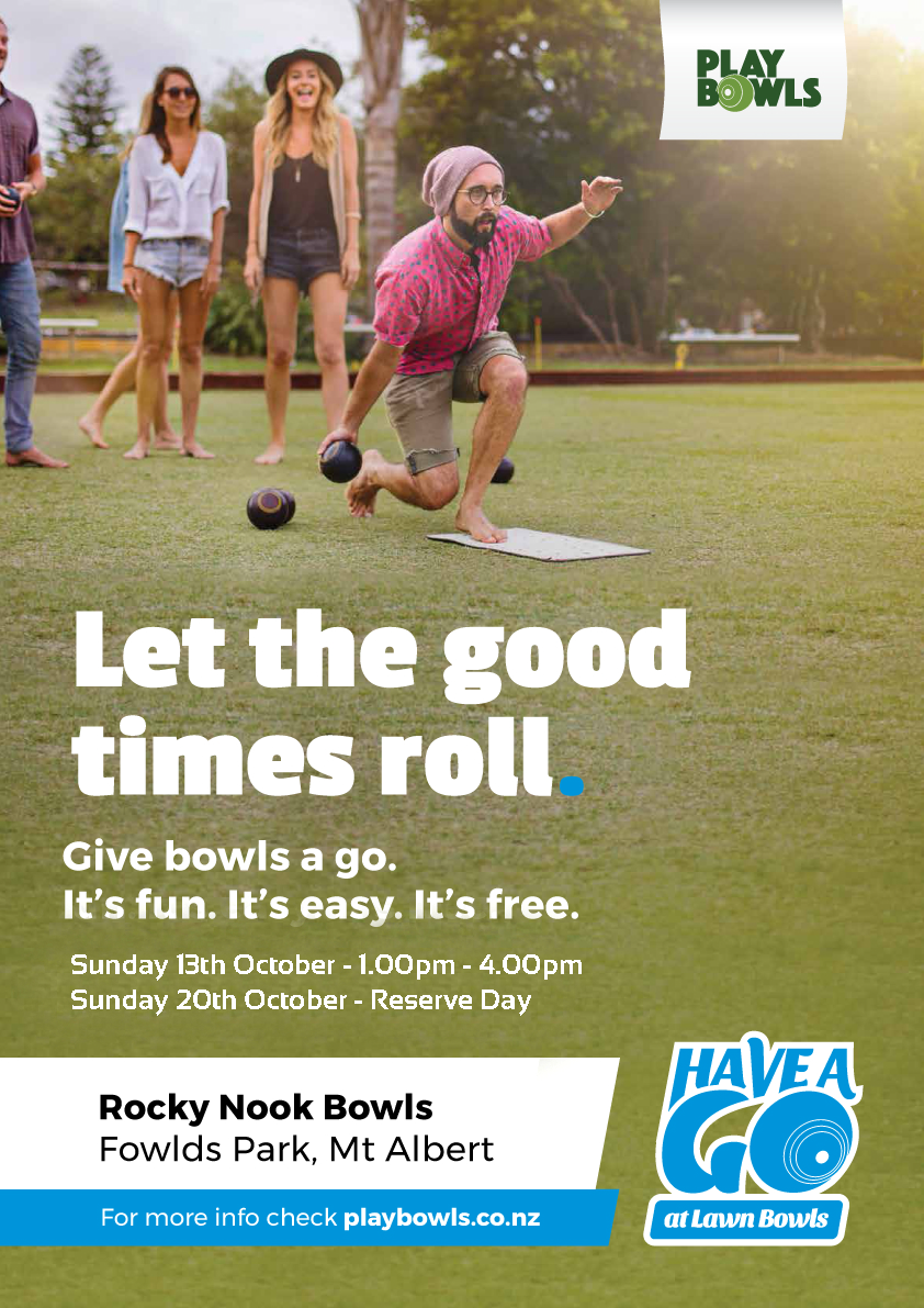 Roll up with friends and whanau … View moreSpread the word- first free public bowls of the season at Rocky Nook Bowls in picturesque Fowlds Park, Mt Albert.