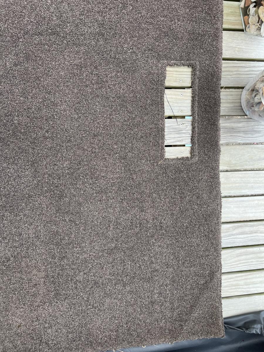 Carpet colour brown, good condition measuring 3.66m by 4.07m. It has a rectangular hole cut in one corner for a heating vent to pop through, 68cm in from corner. (10cm in from end). The opposite corner has a square cutout from the corner of … View moreBedroom carpet which has been removed for a renovation.