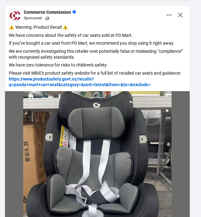 Please visit MBIE’s product safety website for a full list of recalled car seats and guidance: www.productsafety.govt.nz...