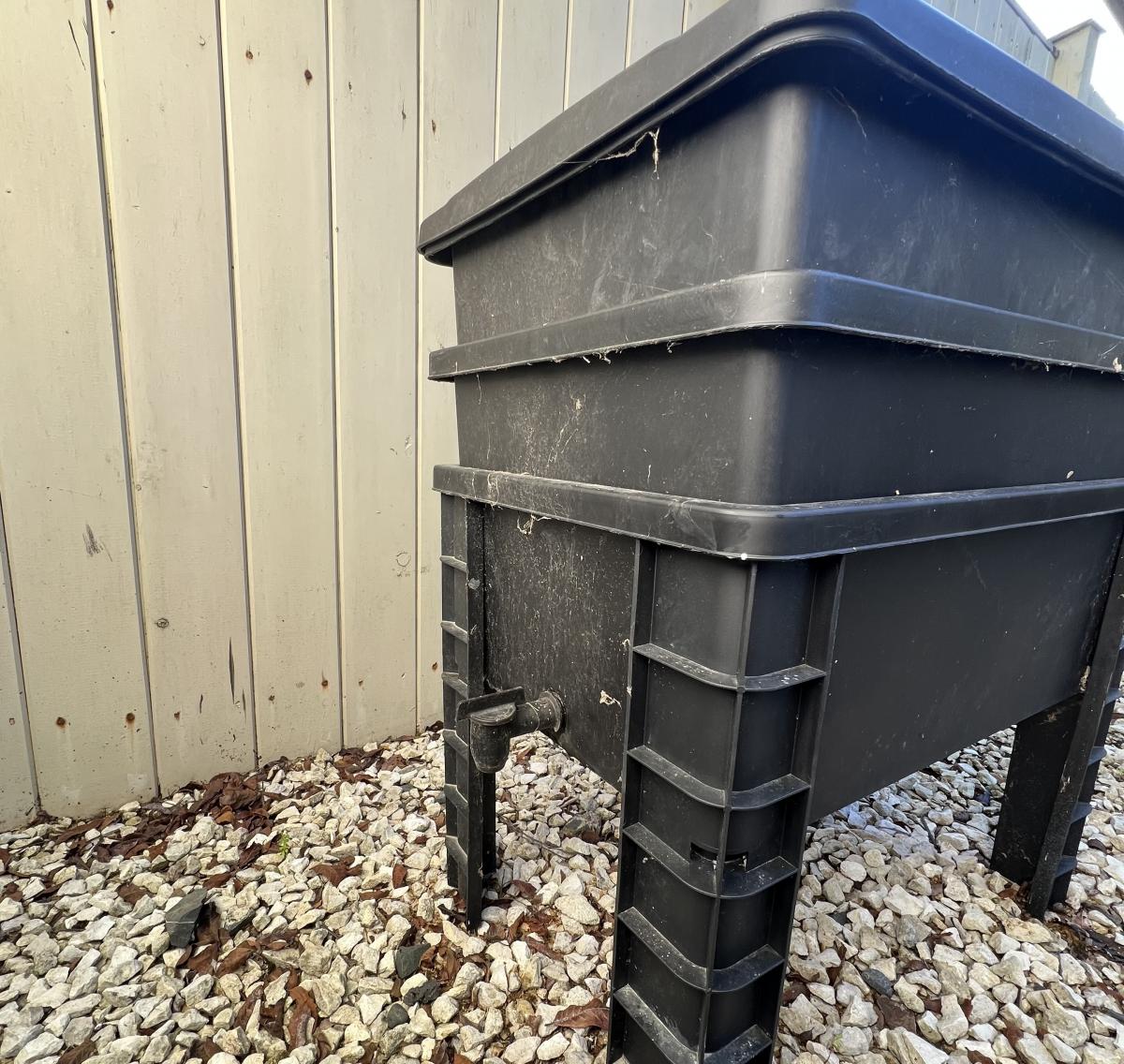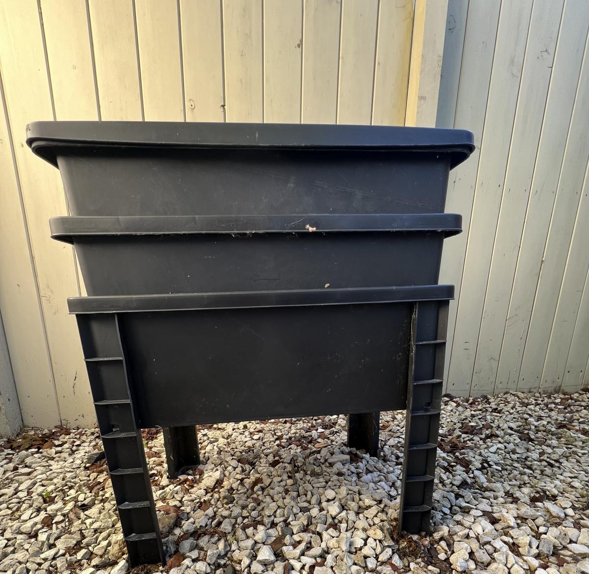 As shown Tui worm farm 3 tier with compost starter, two working trays and one collector tray, hardly used