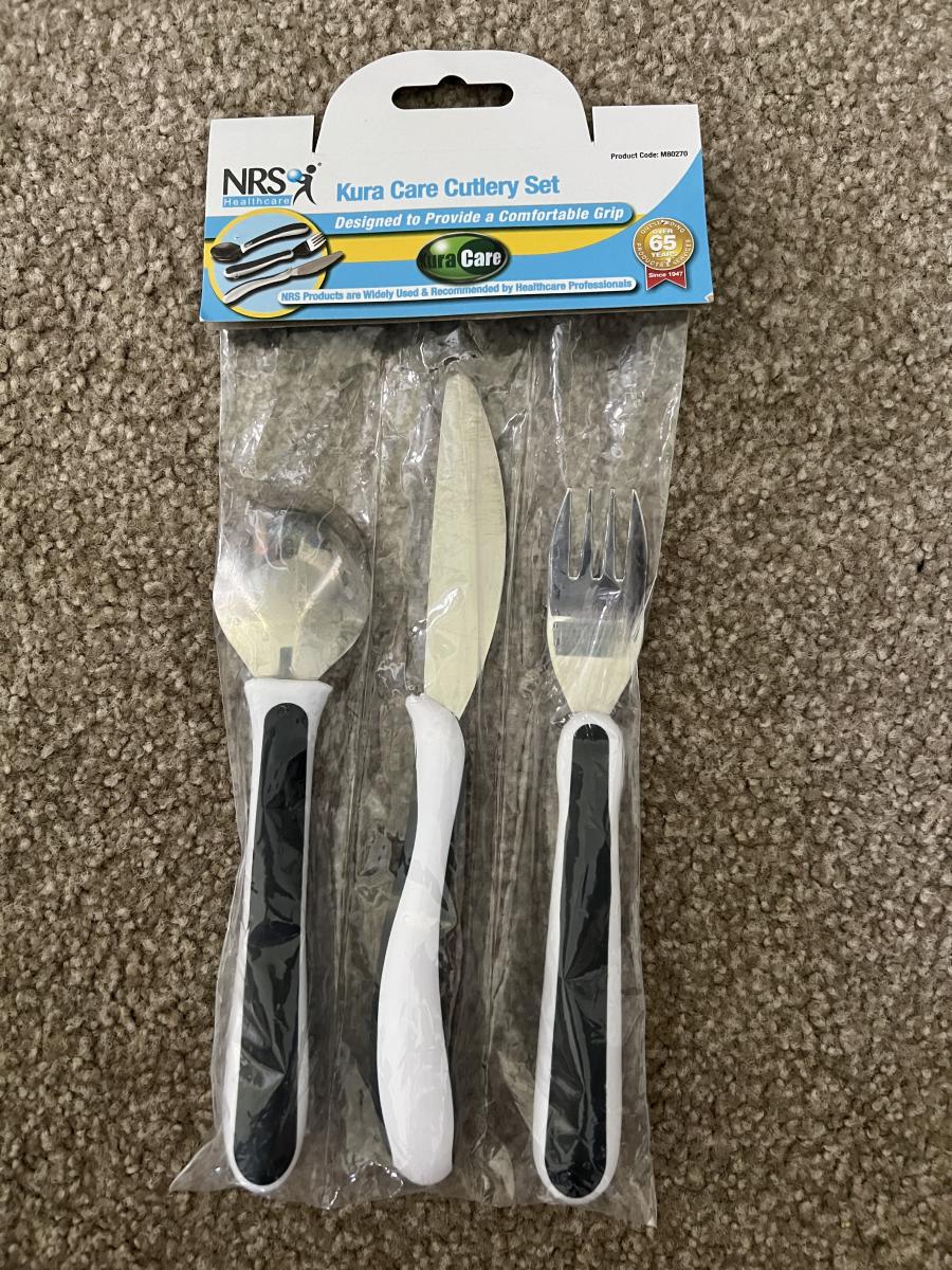 Kura Care Adult Cutlery Set - Ideal for visually impaired / those with arthritis or dementia / or anyone with fine motor challenges.
