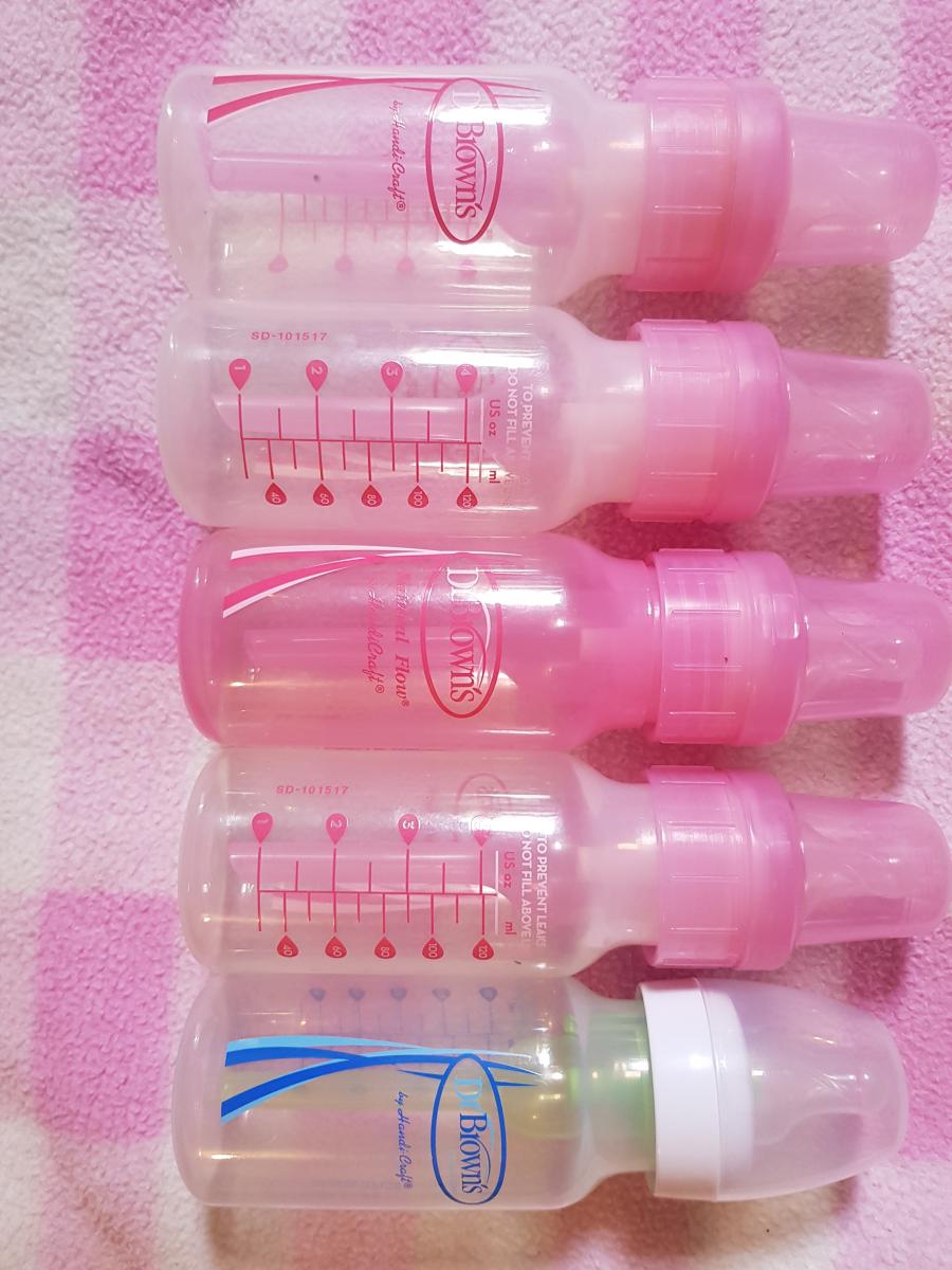 5x 120ml Dr Brown anti colic bottles, size one teats.