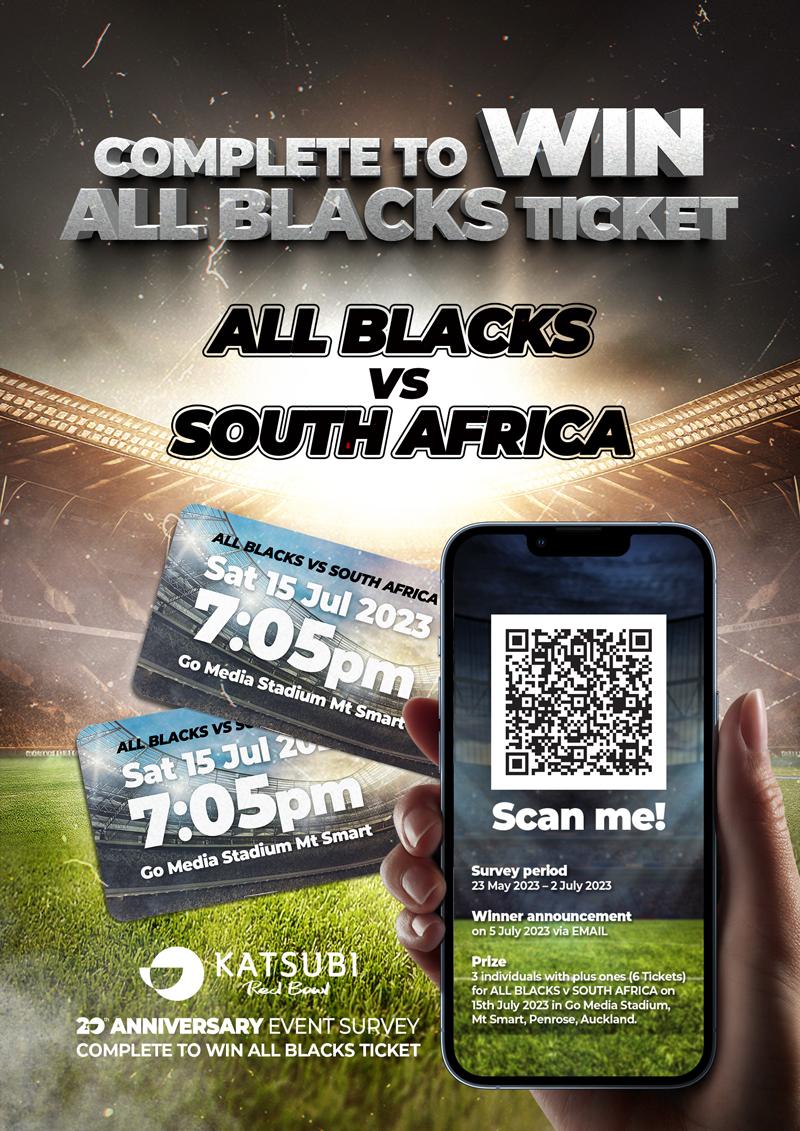 Join our first-ever survey and automatically enter the competition to win tickets to ALL BLACKS v SOUTH AFRICA ๐