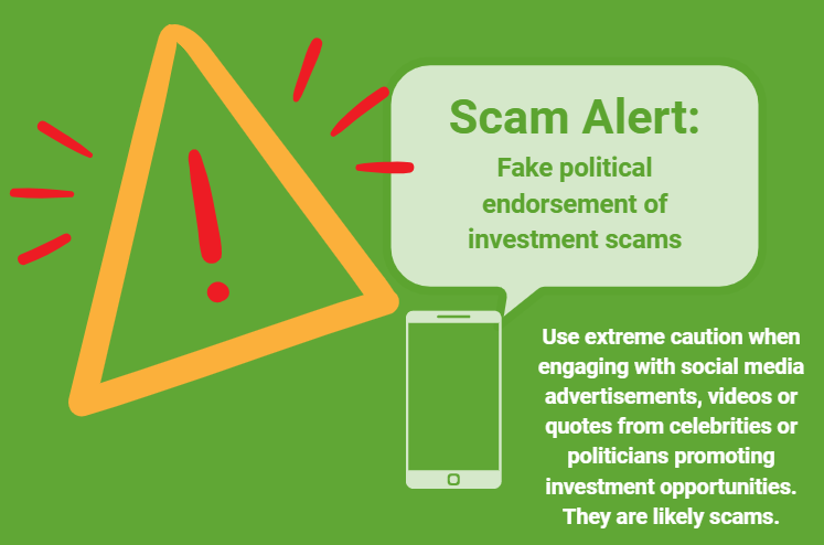 • Claims that the government or politicians are endorsing specific investment opportunities for New Zealanders.