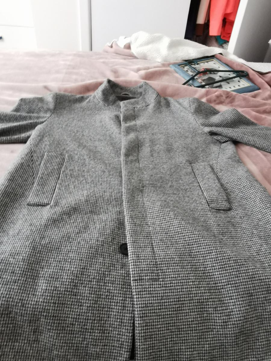 Worn once. Dnt wear it anymore. In good condition. Lining inside coat. Small side pocket. Buttons down the front. Length just past the kneels. Christina.
