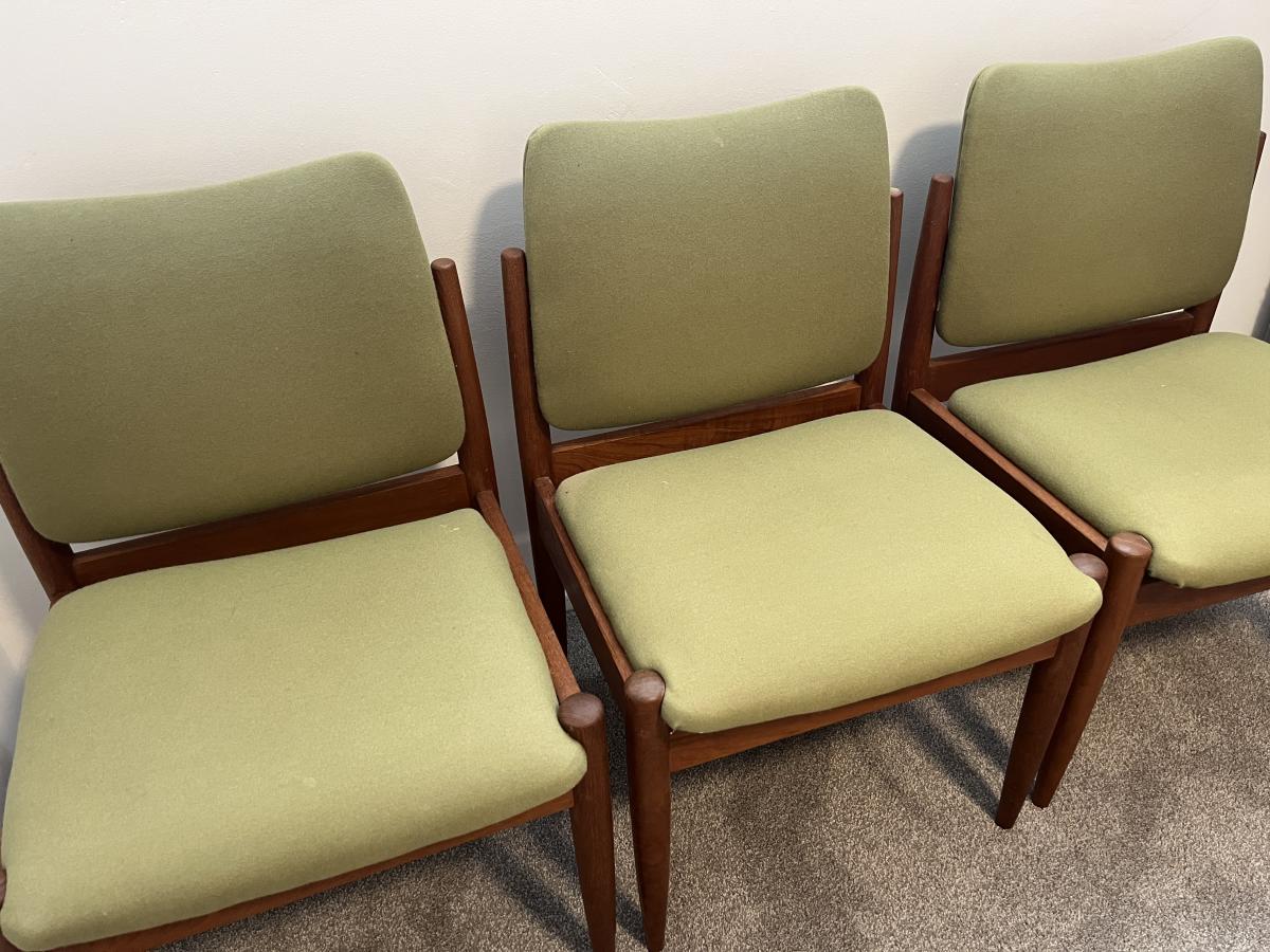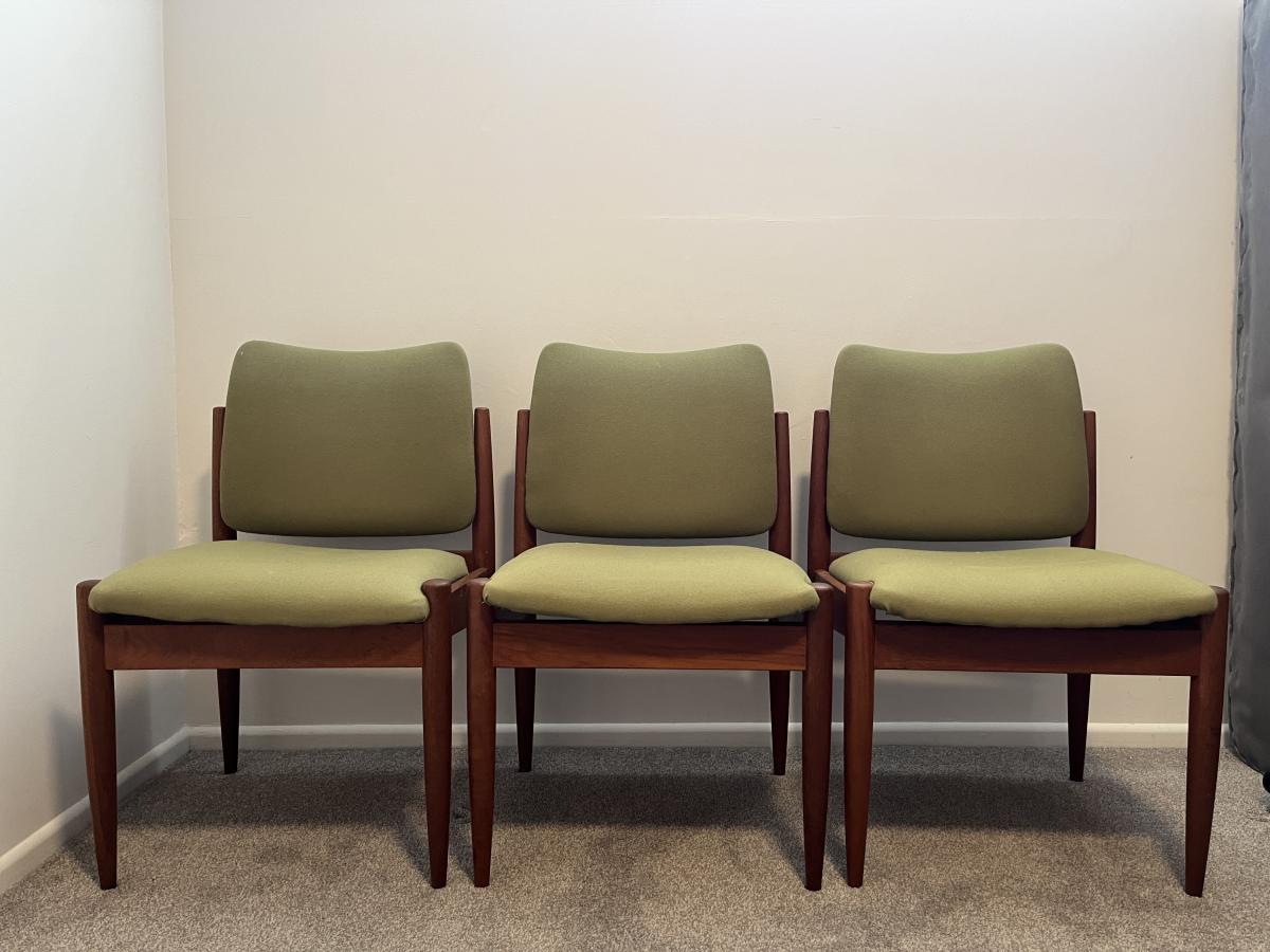 Although three chairs is an odd number, these go well with other chairs, either around a similar era round or rectangular table.