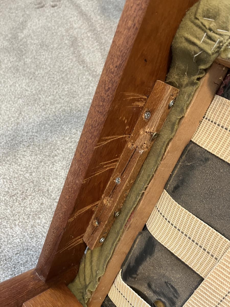 One of the chairs had had a hasty repair job which has resulted in scratches (as pictured in the last photos). This is easily fixed with a new piece of timber and screws. This needs to happen before I’d deem it a useable chair.