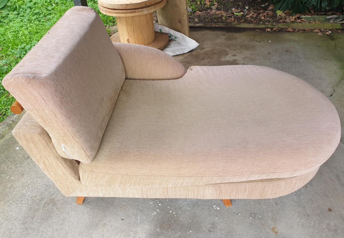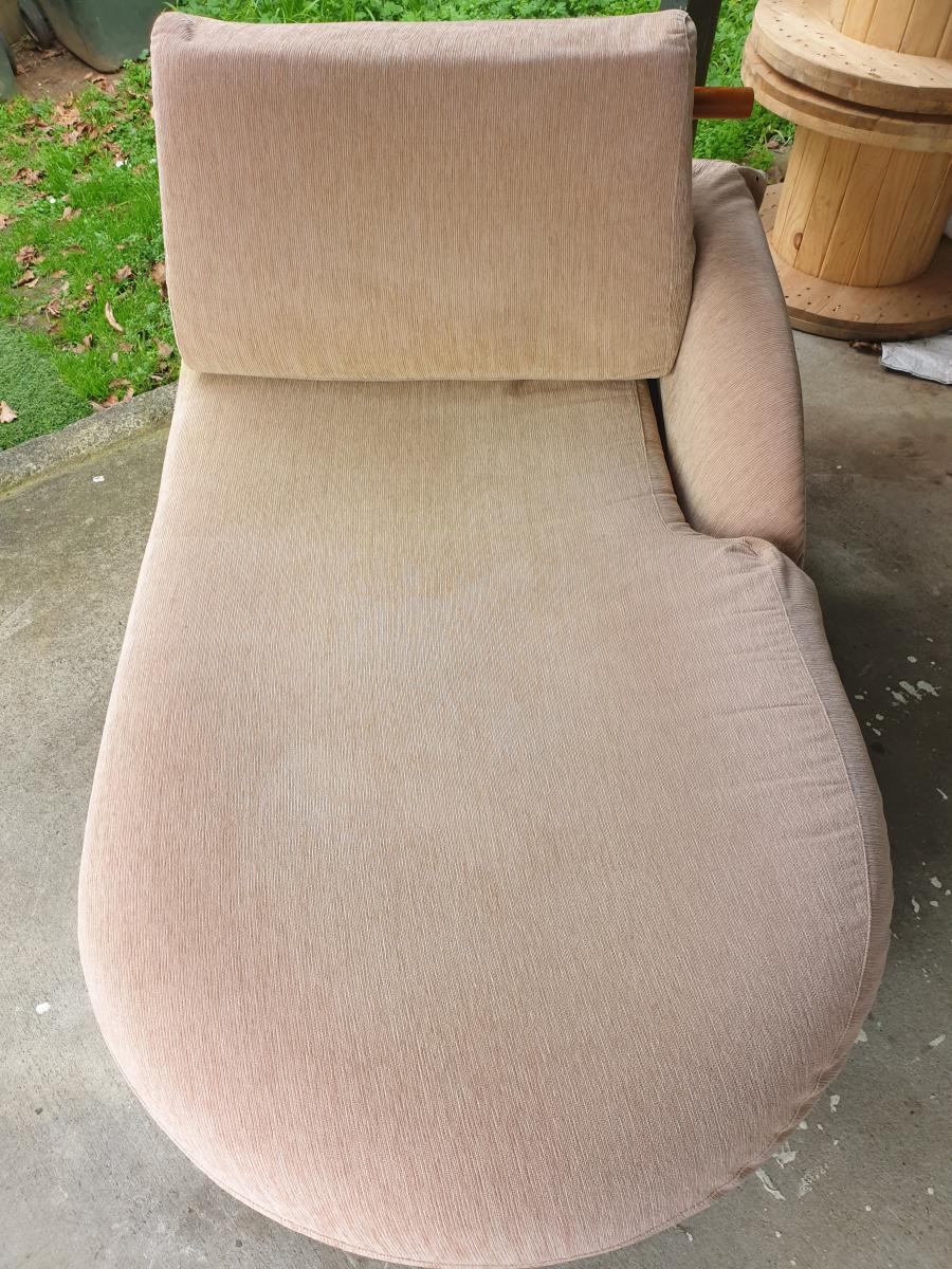 Lovely chaise lounger,clean pet free,smoke free. Would look even more amazing with some retro fabric on it. Or modern-day. Design Euro. I had a sheep skin on it.