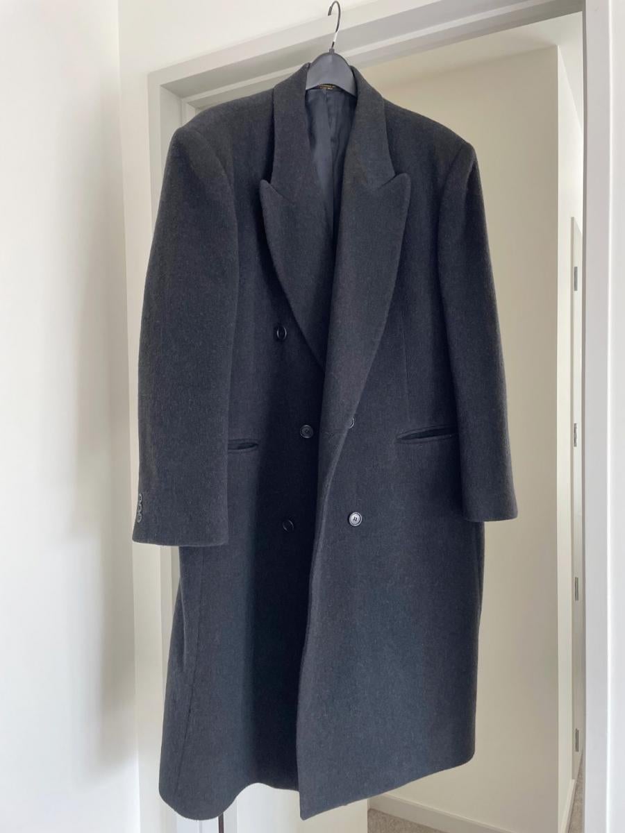 This overcoat has only been worn twice. It cost me a small fortune, but it's too big for me really.