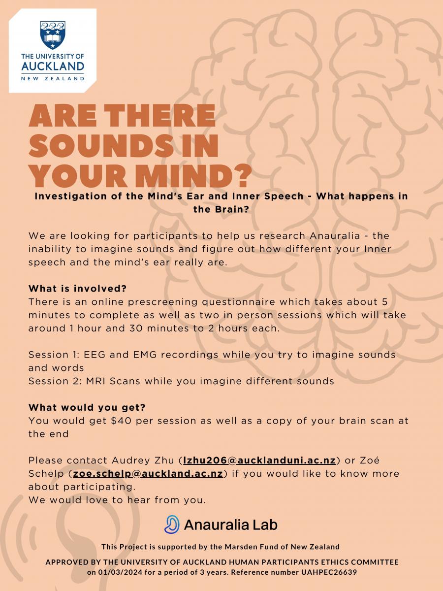 Kia Ora, I'm a final year PhD Candidate and Im in desperate need for a few more right-handed male participants as well as anyone who might not have any inner auditory experiences between the ages of 18 and 40 years old for my study.