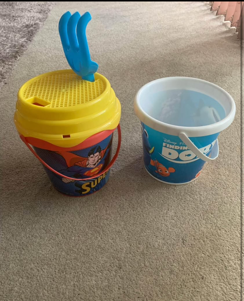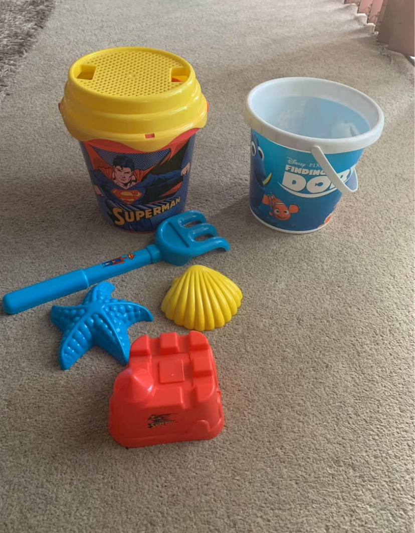 Selling this 5pc Spider-Man Beach Set and Finding Nemo Bucket as no longer required.