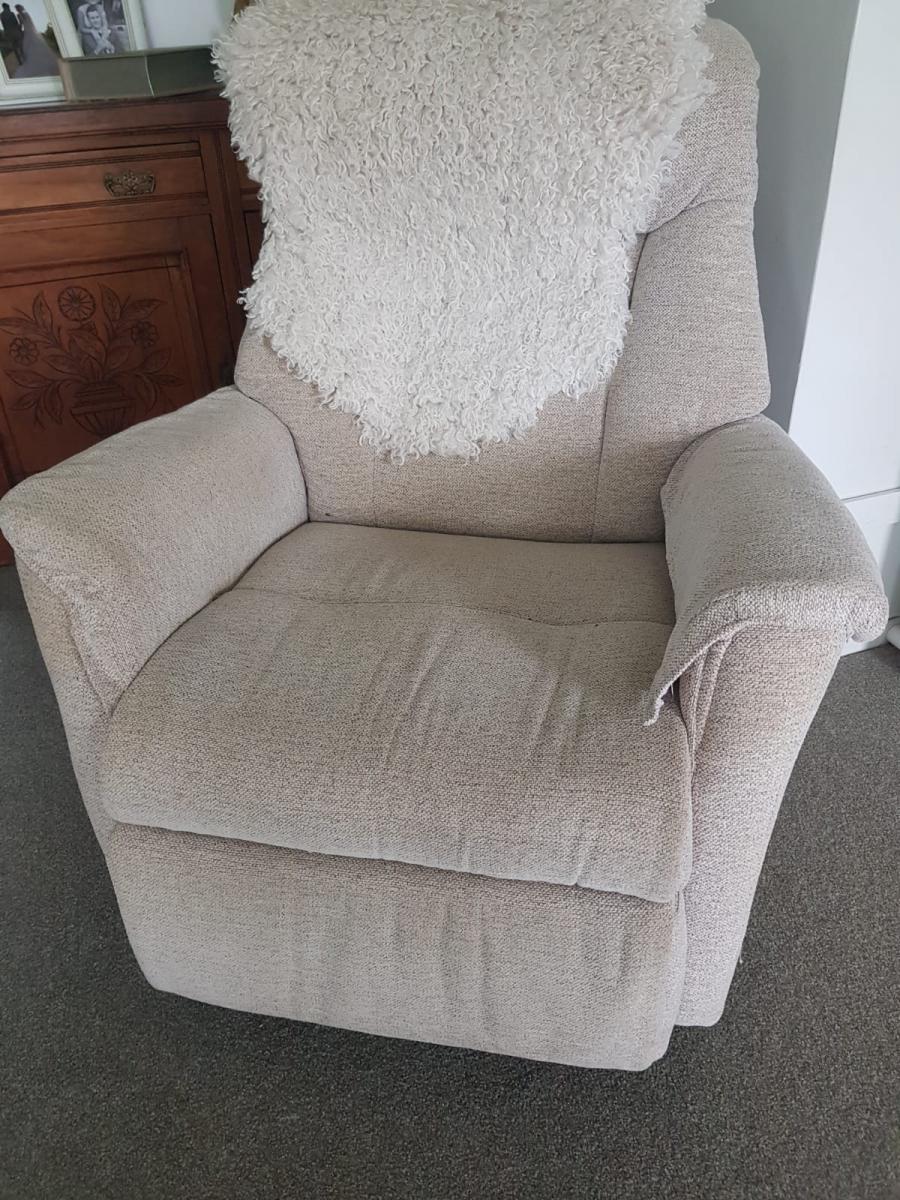Tidy condition, needs a clean, small tear in one arm cover but not the chair itself.