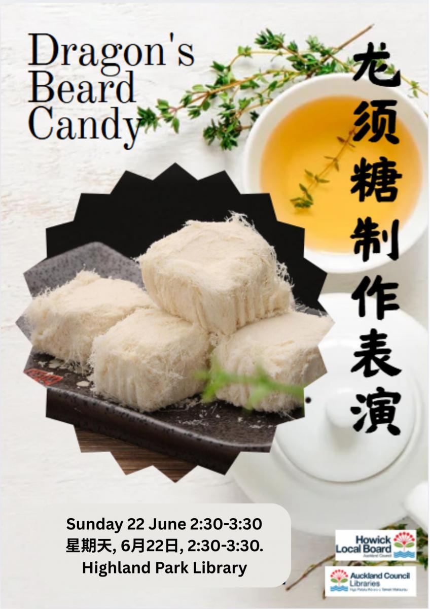 Join us Sunday 22 June 2.30pm at Highland Park Library, for a fun free demonstration and tasting of "Dragon's Beard Candy" also known as Chinese cotton candy. A traditional Chinese confectionery characterized by its thin, thread-like strands resembling a dragon's beard. … View moreJoin us Sunday 22 June 2.30pm at Highland Park Library, for a fun free demonstration and tasting of "Dragon's Beard Candy" also known as Chinese cotton candy. A traditional Chinese confectionery characterized by its thin, thread-like strands resembling a dragon's beard. It's made from sugar and maltose, meticulously stretched and folded into thousands of delicate threads.