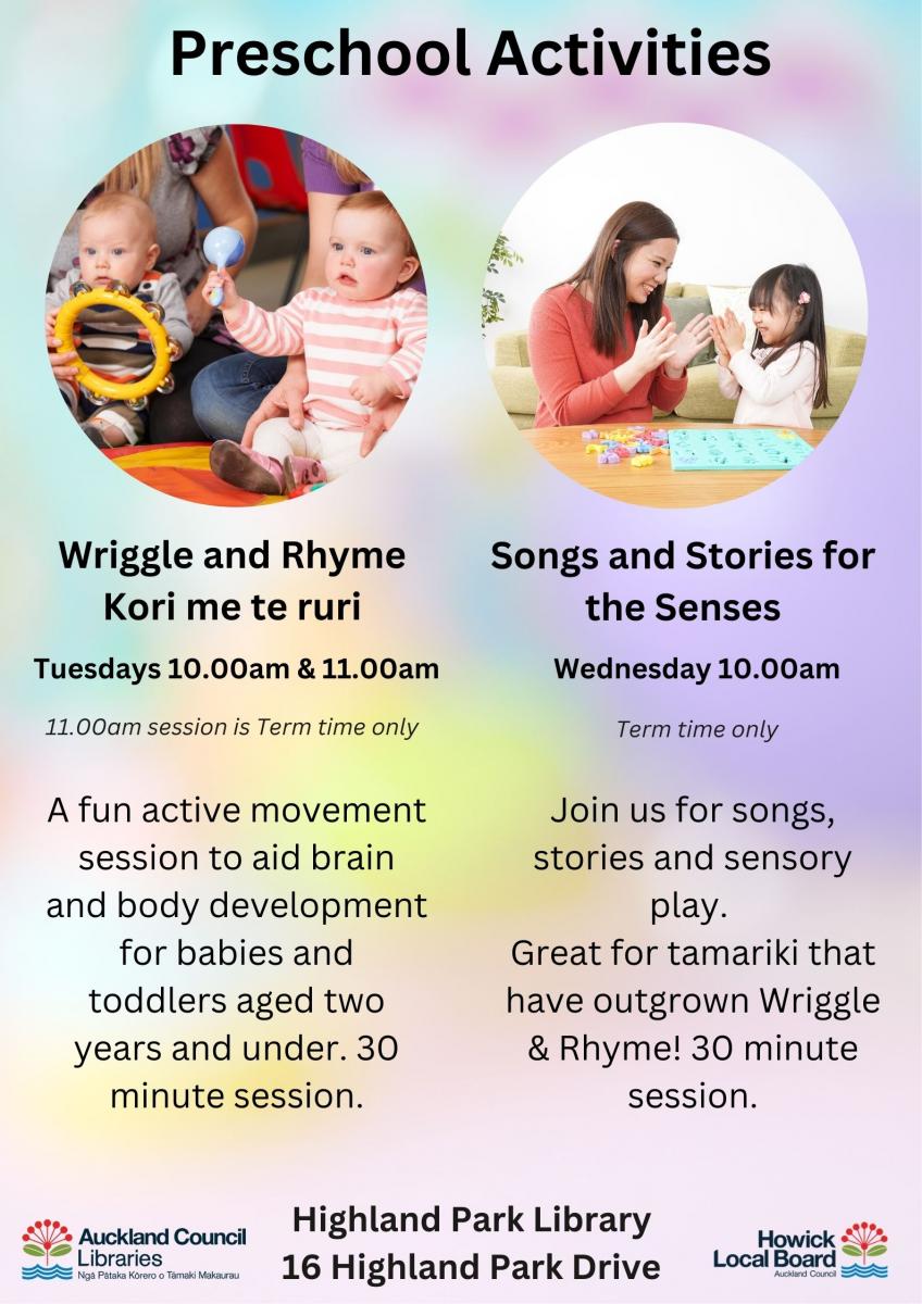 Tuesdays at 10 and at 11am, Wriggle and Rhyme, perfect for babies