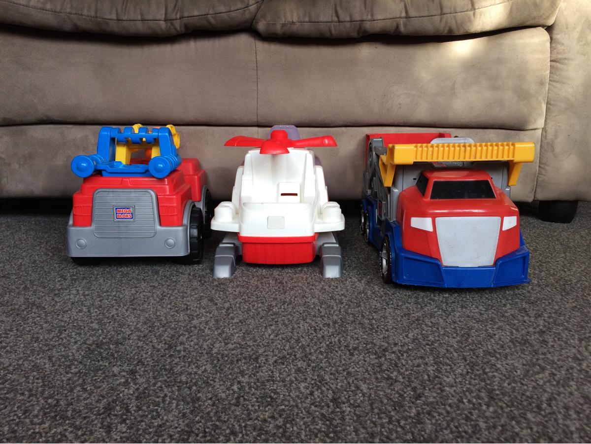 $10.00 Mega bloks fire engine 30cm wide x 22cm high. ladder can rise. In excellent condition. No damage. Also have a helicopter, car transporter and over 100 mega bloks.