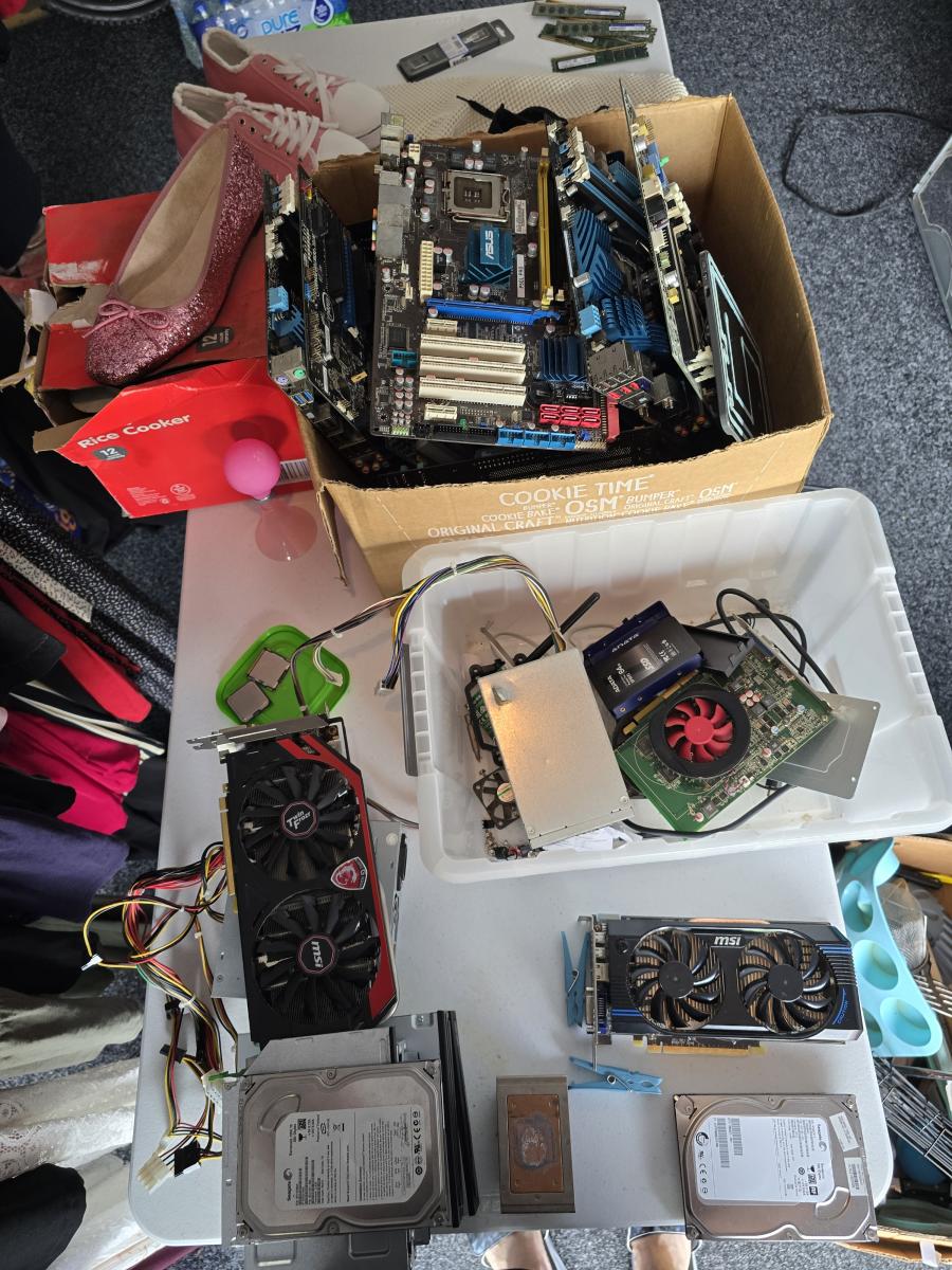 Various computer parts two working computers amd monitor various miscellaneous items .