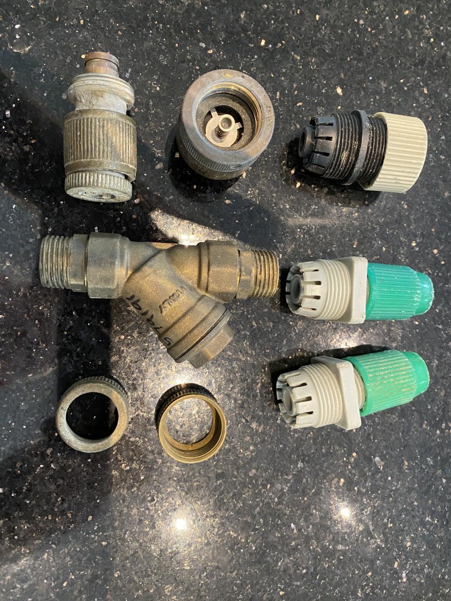 Various brass and plastic hose fittings free to a good home As shown in the picture. Pick up in St Heliers.