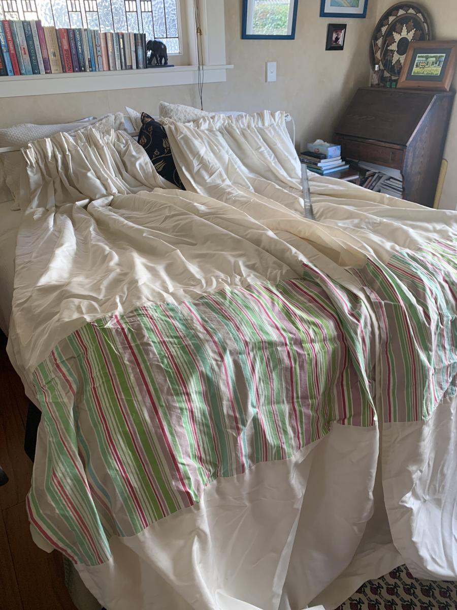 Curtains Rail 162 cms, 2x Curtain drop 253cms, width of each curtain 139 cms.