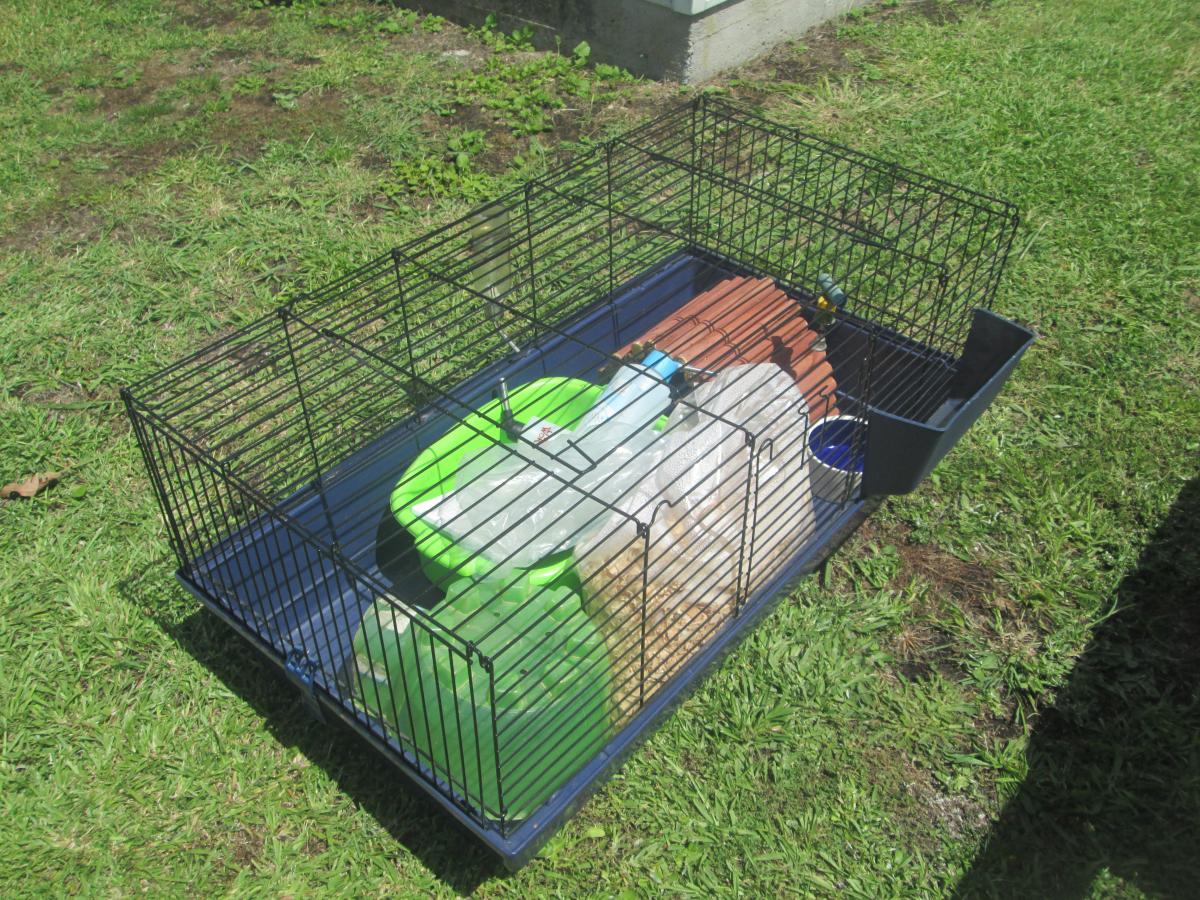The indoor cage is in excellent condition, with only a broken clip on the side, however this doesn't affect the cage usage. It is 100 cm in length, 54 cm in width and 44 cm in height.