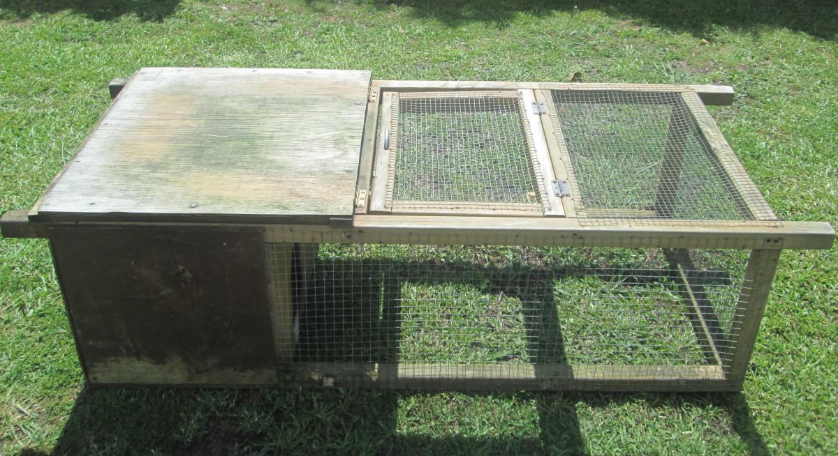 The outdoor run has an enclosed sleeping area for the rabbits or guinea pigs, and a large run, to give access to grass. It is in good condition, and is 170 cm in length, 70 cm in width, and 50 cm in height.