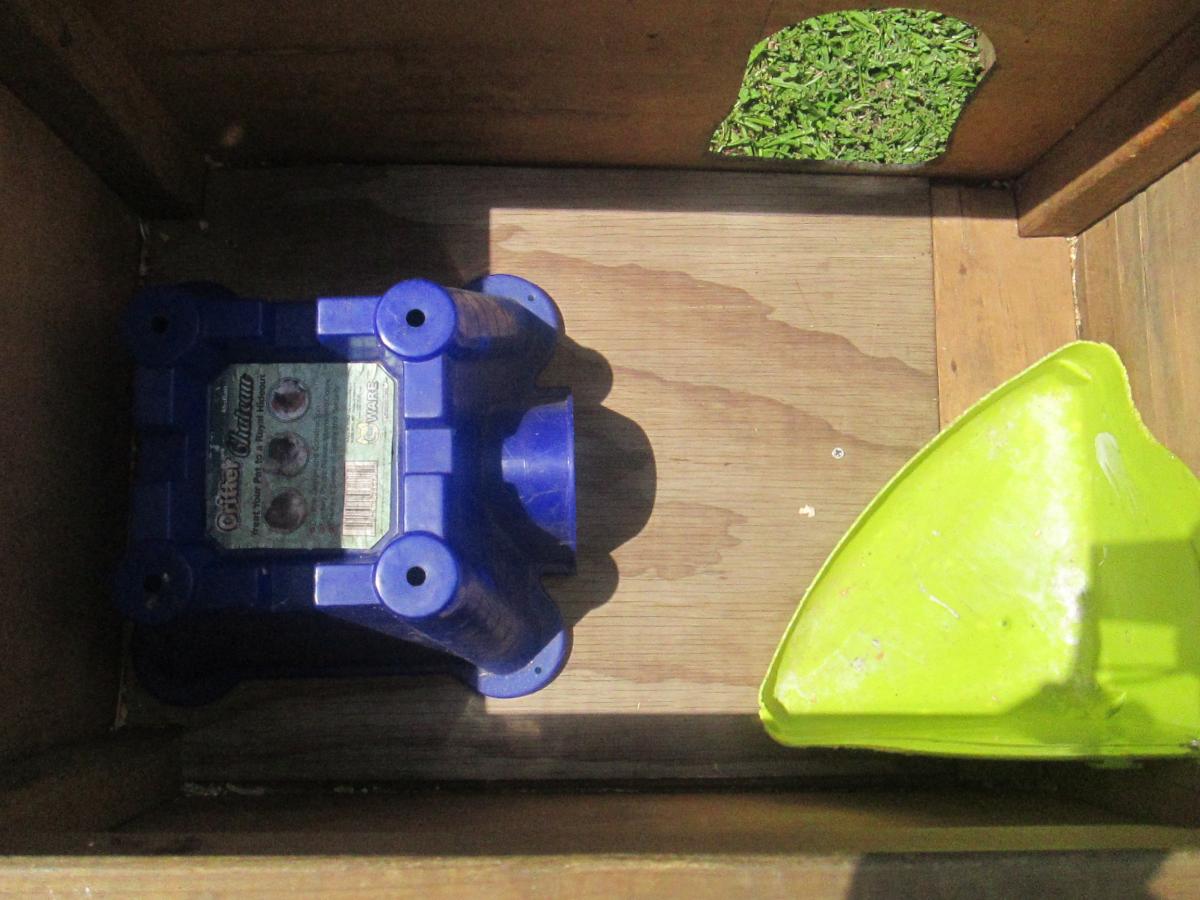 We have a big, wooden framed run for outdoors, and a smaller plastic cage for indoors; both of which are suitable for rabbits or guinea pigs. We usually brought our guinea pigs inside at night, to prevent them getting too cold, and brought them in when the weather was bad, however we put them outside during the day to give them some good exercise, and grass, which is a staple food of their diet.