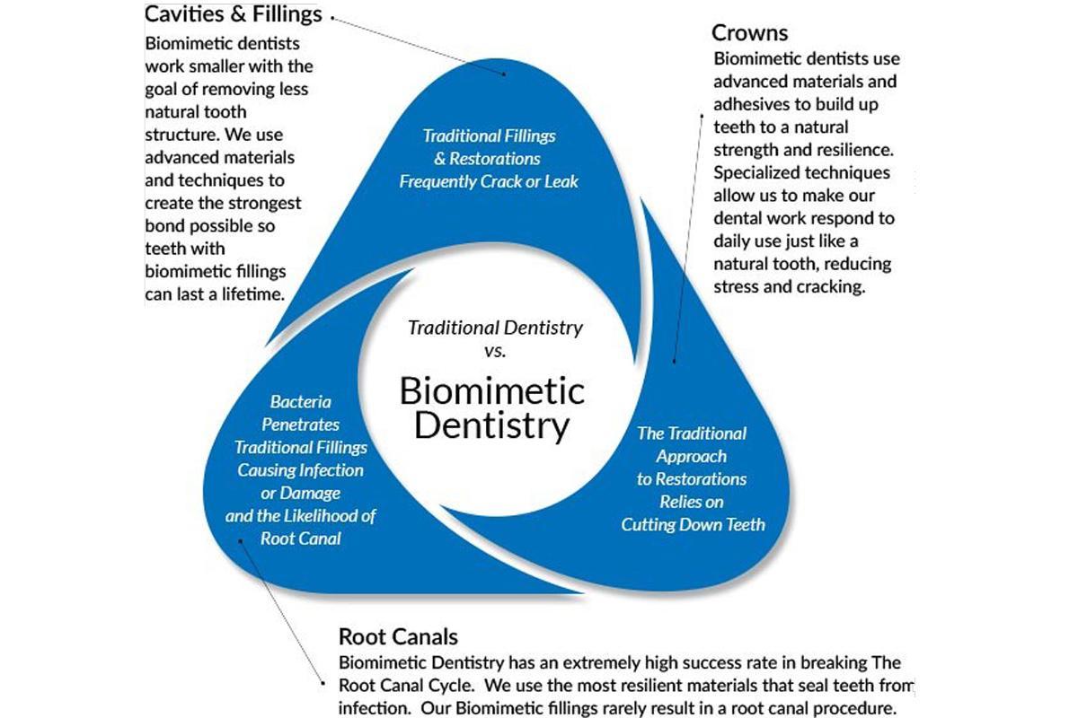 Biomimetic dentistry means to mimic biology. Nature has already created the most ideal properties of our teeth. When practicing biomimetic dentistry to restore damaged, broken and decayed teeth, the goal is to return the tooth to its original strength, function and aesthetics. Using these modern techniques mean that more natural healthy tooth structure is retained and only the damaged parts are removed. Ultimately, minimally invasive dental practice means less time in the chair, less return visits, less discomfort and more money saved on long term maintenance of your teeth.